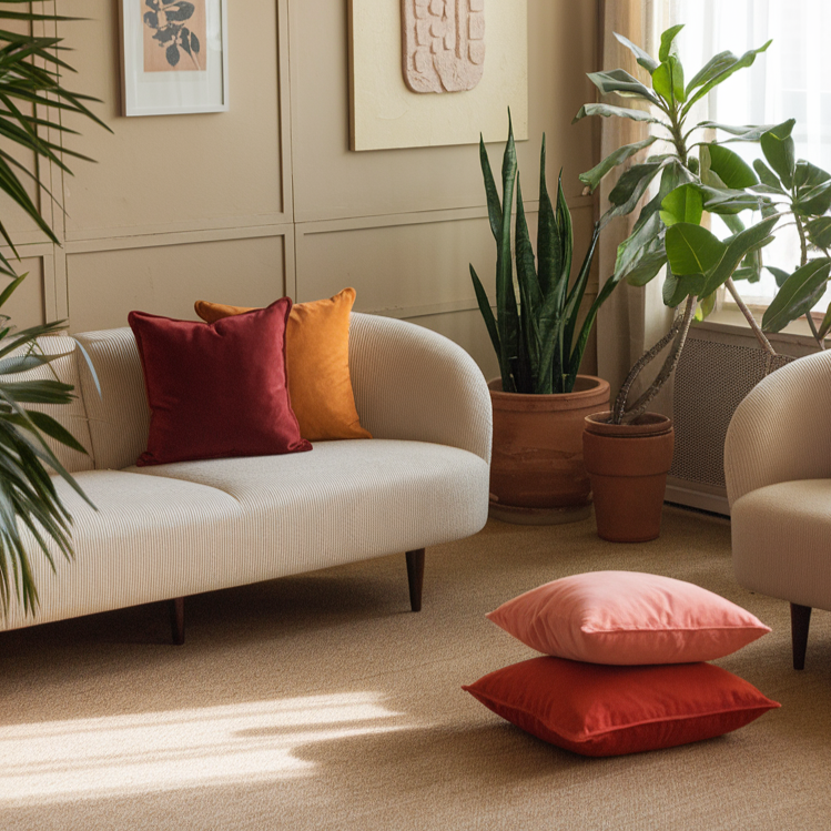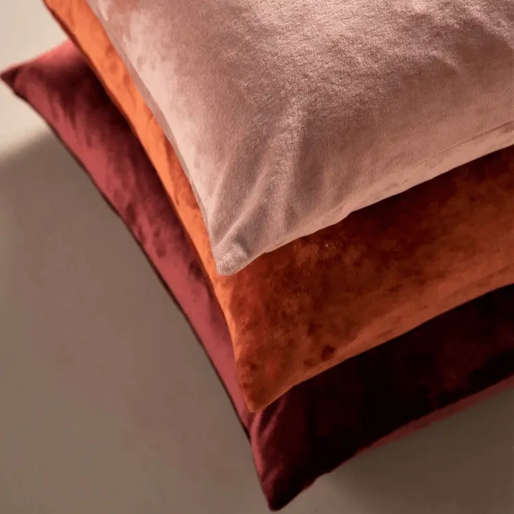Ontdek de prachtige set van drie sierkussens van het merk Dutch Decor, in de betoverende kleuren Merlot, Muted Clay en Potters Clay. Deze fluwelen kussens voegen onmiddellijk een gezellige sfeer toe aan je interieur en stralen luxe uit.