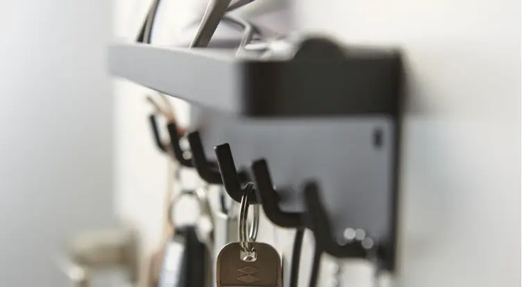 Dit handige sleutelrek van metaal is voorzien van een magneet, waardoor je het eenvoudig aan elk metalen oppervlak kunt bevestigen of met schroeven aan de muur kunt hangen. Het rek heeft zes haken voor je sleutels en beschikt bovendien over een plank bovenaan waar je kleine voorwerpen of decoraties op kunt plaatsen.