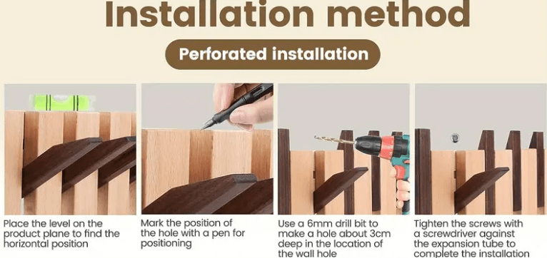 Met zijn afmetingen van 48 × 18 × 6 cm is deze pianokapstok compact én praktisch. Perfect voor een smalle hal, gang, overloop of slaapkamer. Wil je meer capaciteit? Hang dan twee of meer kapstokken naast elkaar voor een luxe, hotelachtige uitstraling en extra ophangmogelijkheden.